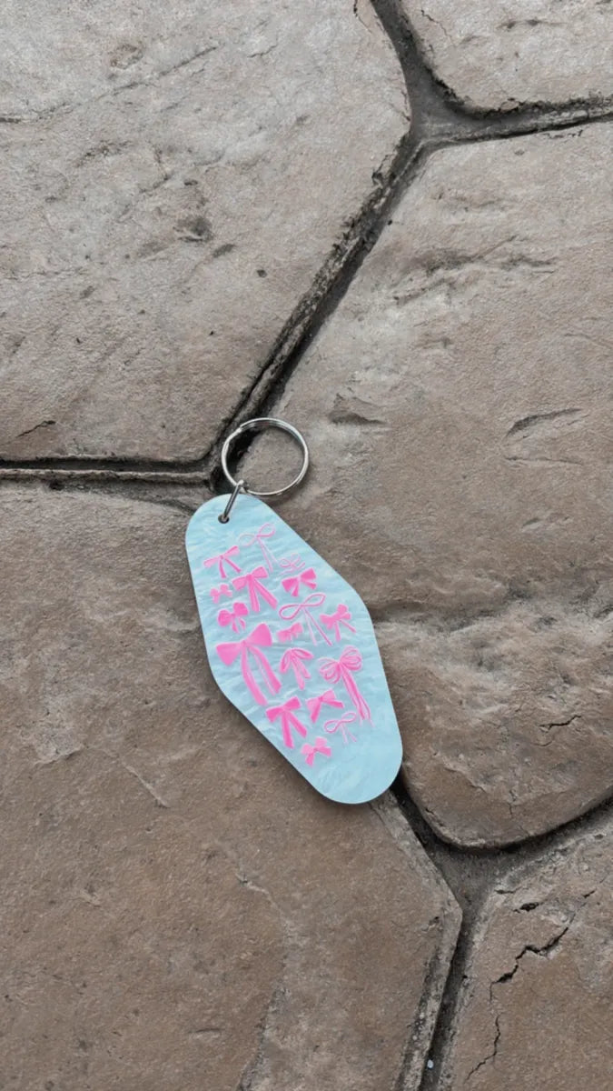 Elevate your retro style with our Coquette Bows & Cherries Retro Motel Keychains. These keychains adds a touch of charm to your everyday accessories.